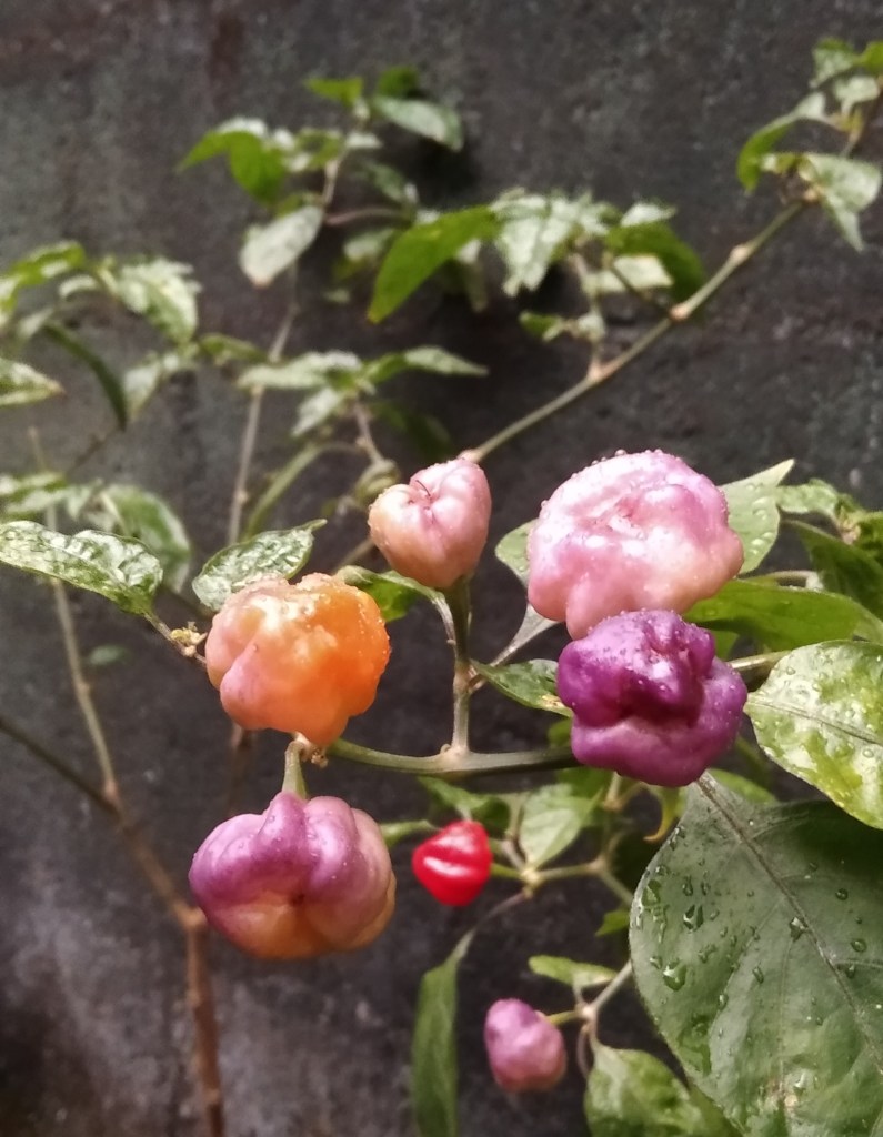 After drying the seeds inside this pod, I planted them on a tray and watched them germinate, grow into delicate seedlings, then sprout leaves one by one. Observing this development became my daily obsession and also my peace of mind since watching things grow always gives me an unexplainable form of satisfaction. Eventually, they became old enough to be transferred into their new pots and at the end of the transfer, I had 37 potted chili pepper seedlings. But sadly not all of them survived their journey into maturity. In the face of unfortunate whitefly infestations, wilting and harassment from my pet puppy (he thought these pots are ideal potty spots and that the seedlings are his chew toys), 12 of them went on to flower and fruit, that too was not without difficulty. I used to check leaf by leaf for potential threats from whiteflies and aphids until the leaves became too numerous for me to manage by handpicking. Jetting water out of a spray bottle worked well on expelling the whiteflies and a soap solution worked on the notorious aphids like a charm. I was completely over the moon when little purple flowers popped up in the trees and the actual magic happened when they turned into fruits! My little mission was a success and I now have 12 purple chili pepper plants that are perfectly lit with colorful chilies in my garden that I care for like absolute treasures. The above garden owner’s fear of parting with even one of her pods was very well justified considering the amount of effort I had to put into bringing these pepper plants to life.