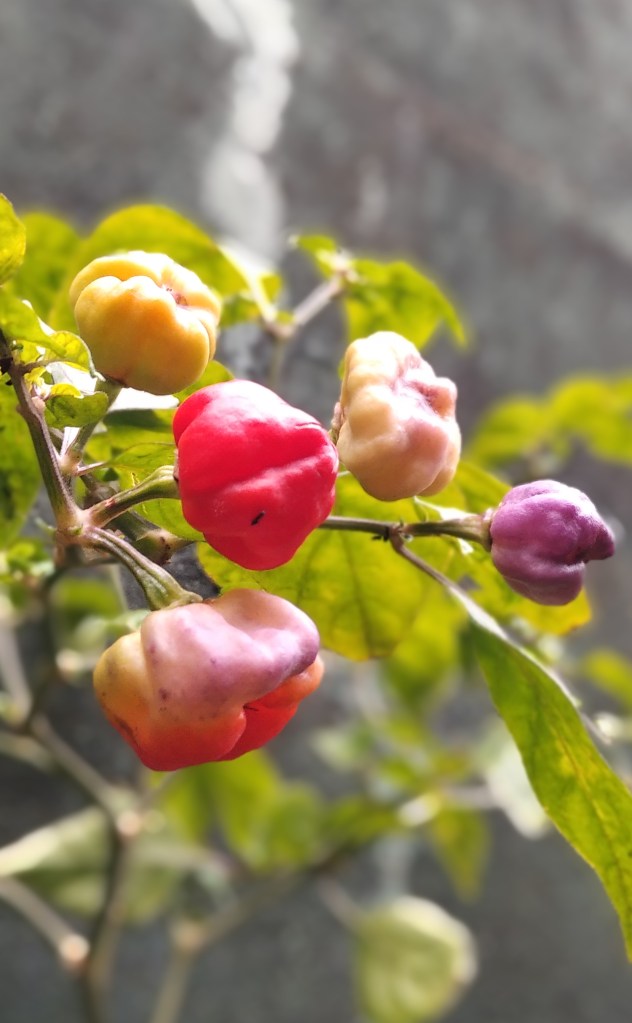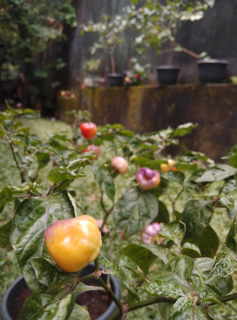 So, this chance encounter with this pepper tree happened about a year ago when we were visiting an old friend of my mother’s. I distinctly remember stepping into their garden and instantly gasping with bewilderment at the sight of this pepper tree which sported glistening balls of peppers in a spectrum of colors, much like beautiful bright light bulbs lit from its branches. I have never known a chili tree could be this beautiful and immediately decided I wanted this happy sight in my garden as well. So I courteously asked for a pod from the garden owner, the wife of my mother’s friend, in hope of generating some brand new seedlings. She was kind of reluctant at first (she had to get her husband’s permission first as well since apparently, this was the only successful plant among the many purple chili plants they’ve tried to grow in their garden) but eventually gave me one ripe pod.